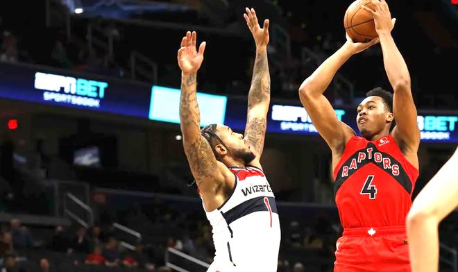 3、巴雷特的实力真的很强,他是猛龙进攻体系中高效的攻坚点与关键球执行者,完美适配球队快攻风格。本赛季他效率显著提升,常规赛首战更以75%命中率轰下25分8篮板5助攻,他有两点作用突出:一是转换进攻中的闪击能力,能快速冲击篮下撕开防线;二是关键时刻的终结力强,末节比赛进入胶着时,存在感很强。本场比赛,他的效率很高,12中9,得到20分6篮板。